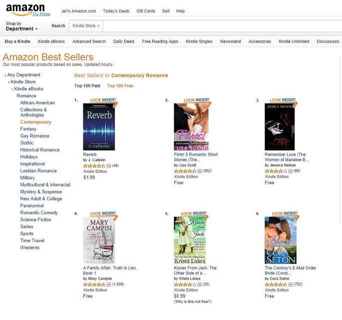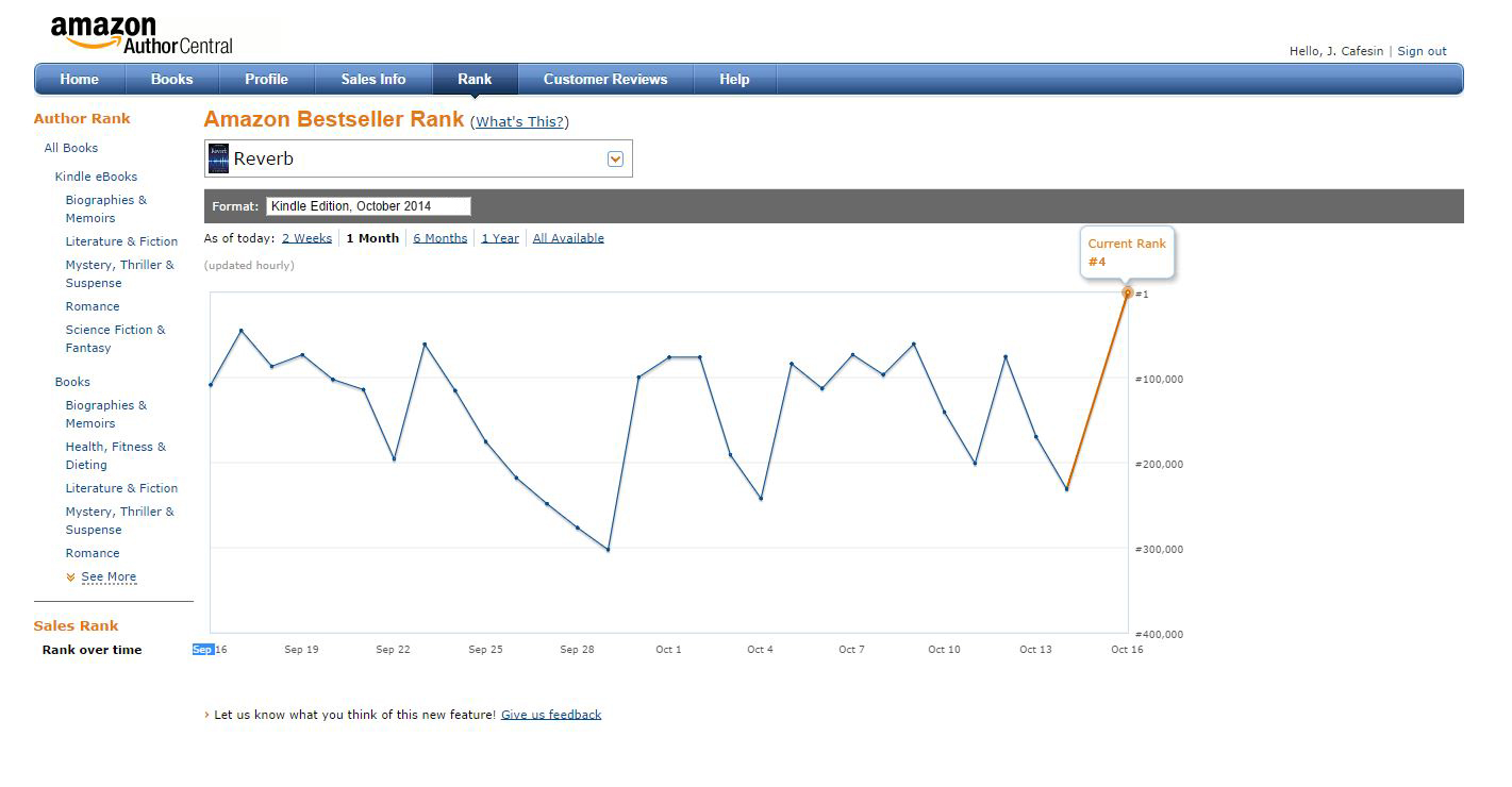 #1 Bestseller in Kindle Store, October, 2014 Reverb was #1 in Best Sellers in Contemporary Romance in the Kindle Store: Reverb was #4 in Bestsellers Overall in the Kindle Store: